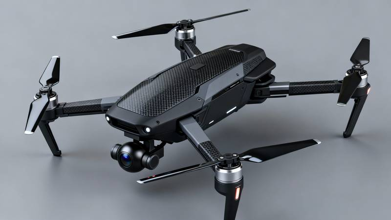 The drone’s striking, low-profile form factor is achieved through meticulous engineering and the use of cutting-edge materials. The top shell, visibly finished with a technical carbon fiber weave, provides exceptional structural rigidity while keeping the overall weight to a minimum. This ensures the drone is highly resistant to vibration and minor impacts. The four robust arms feature a rapid-fold design, allowing the entire unit to transition from packed storage to flight readiness in less than 30 seconds—a crucial advantage for time-sensitive fieldwork.