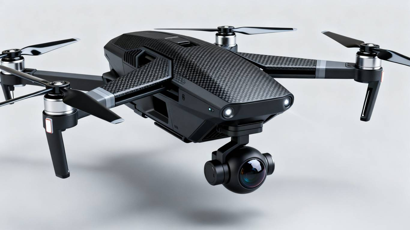 The drone’s striking, low-profile form factor is achieved through meticulous engineering and the use of cutting-edge materials. The top shell, visibly finished with a technical carbon fiber weave, provides exceptional structural rigidity while keeping the overall weight to a minimum. This ensures the drone is highly resistant to vibration and minor impacts. The four robust arms feature a rapid-fold design, allowing the entire unit to transition from packed storage to flight readiness in less than 30 seconds—a crucial advantage for time-sensitive fieldwork.